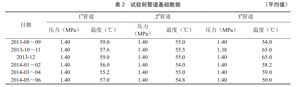 檢測數據顯示,管道內襯后承壓能力可達7.1 MPa; φ114 mm、 φ159 mm軟管在4~5 MPa壓力下無(wú)滲漏、無(wú)裂口、無(wú)急劇變形等現象出現,內襯軟管可耐壓4.5 MPa;軟管本身的敷膜層與編織層之間,軟管與鋼管之間的剝離強度(即黏結強度)分別超過(guò)35 N/cm2和60 N/cm2,而內襯軟管的黏結強度為37.8 N/cm2,滿(mǎn)足油田生產(chǎn)所需。