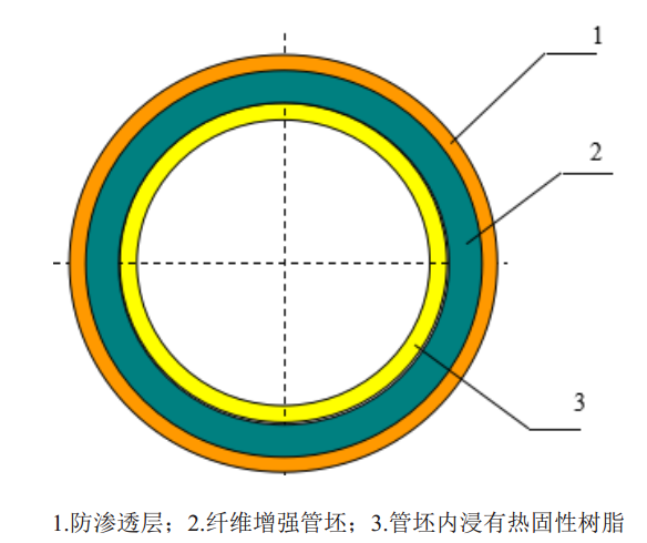 樣品內翻襯復合軟管為增強纖維編織管坯,外敷有防滲透層,管坯內浸有熱固性樹(shù)脂。