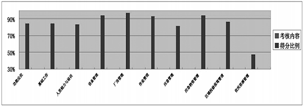 本次考核中4個(gè)維搶修中心得分超過(guò)90分,達到優(yōu)秀水平。 其中西部管道公司鄯善維搶修中心90.5, 排名第三。 功能定位項目平均得分84.13%, 西部管道公司得分100%, 高出近16個(gè)百分點(diǎn); 得分率最差項目為基礎工作, 平均得分84.5%, 平均扣分1.63, 西部管道公司得分率71%, 扣分2.9, 低近14個(gè)百分點(diǎn)。