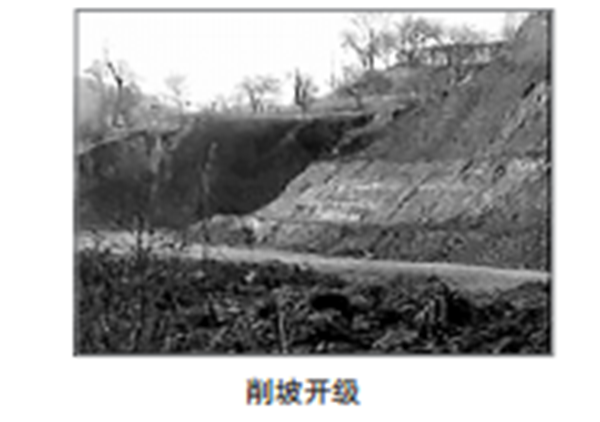 通過(guò)削掉非穩定體的部分,減緩坡度,減小滑動(dòng)力,以及開(kāi)挖邊坡,修筑階梯或平臺,達到相對截短坡長(cháng),改變坡型、坡比,降低荷載重心,維持邊坡穩定。