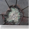 達到測試周期后,拆除電源,用濕布擦洗防腐層表面,觀(guān)察防腐層表面狀況,看是否出現新的漏點(diǎn)及漏點(diǎn)周?chē)栏瘜觿冸x情況,用刨刃在防腐層表面做出米字型的切口,以人為孔為中心,確保防腐層被完全切透至鋼材表面,用尖刀嘗試挑起防腐層,并拍照記錄防腐層被挑起的情況。以缺陷孔中心為起點(diǎn),測量并記錄各個(gè)方向上的剝離距離。