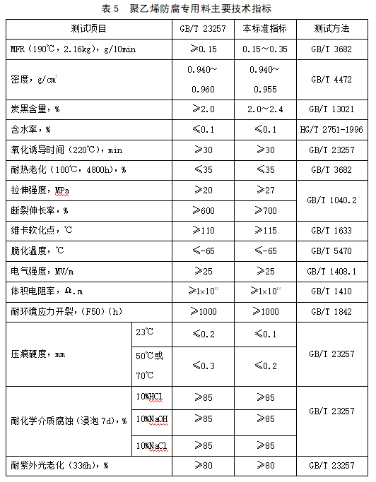 綜上所述,為避免灰分含量偏高影響對產(chǎn)品的耐環(huán)境應力開(kāi)裂性能,結合正常產(chǎn)品的灰分含量測試結果,本標準給出的灰分含量指標為≤1.0%,其他各主要技術(shù)指標見(jiàn)表5。