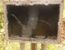 圖2 恒電位儀被燒毀      圖3 等電位連接器被燒毀