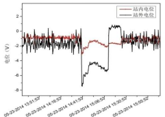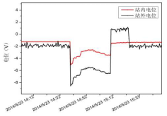 圖8 從化站站內外電位          圖9 廣州站進(jìn)站處站內外電位