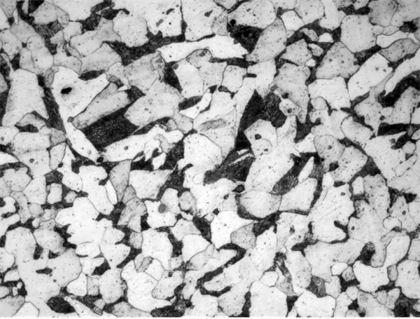 從圖5、圖6可以看出,2段試樣的組織均為鐵素體+珠光體的亞共析鋼組織。但因生產(chǎn)廠(chǎng)家制造工藝差別,鐵素體和珠光體兩相組成的比例和晶粒的大小、分布有所不同,但均符合標準要求,對材料性能影響不大。
