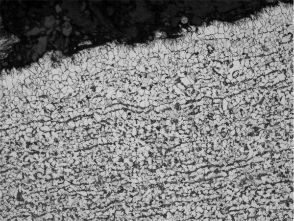 圖7 王一計管道試樣腐蝕坑周?chē)鹣嘟M織(100×)