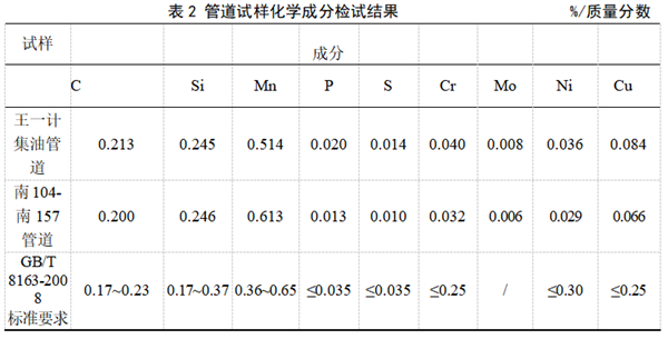 2段管道試樣的化學(xué)成分檢測結果見(jiàn)表 2。
