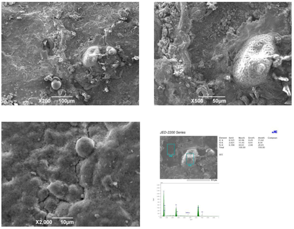 2段管道試樣的腐蝕產(chǎn)物形貌及EDS分析結果見(jiàn)圖9、圖10。