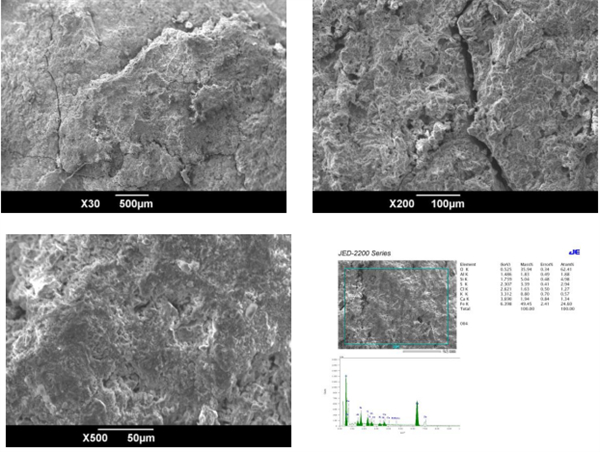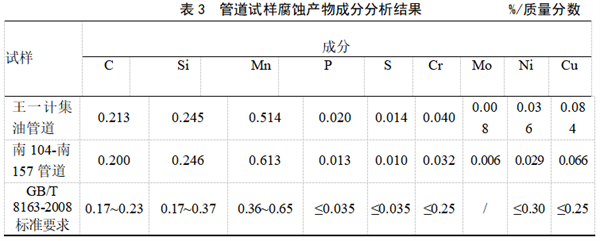 從內表面腐蝕形貌可以看出,輸送原油的王一計集油管道腐蝕層較為平整,腐蝕產(chǎn)物分布均勻,屬于典型的全面腐蝕形貌。