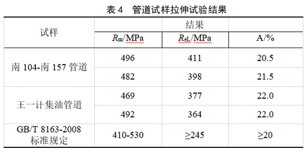 2段管道試樣的拉伸試驗結果見(jiàn)表4。