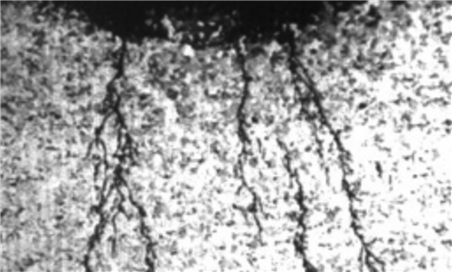 近中性pH-SCC常發(fā)生在有鐵素體/珠光體組織的碳—錳鋼中。實(shí)驗室和野外研究表明,沒(méi)有一種特殊組織或牌號的鋼更抗近中性pH—SCC。另外,冷加工能增加陷阱濃度,因此可大大提高氫的濃度。冷加工也影響陽(yáng)極溶解型的SCC。冷加工比退火的金屬產(chǎn)生更多的陽(yáng)極溶解活性點(diǎn)。冷加工材料的表面形成的鈍化膜不具有保護性,這可能導致局部腐蝕的過(guò)早形成,在應力或應變下,還可導致SCC。