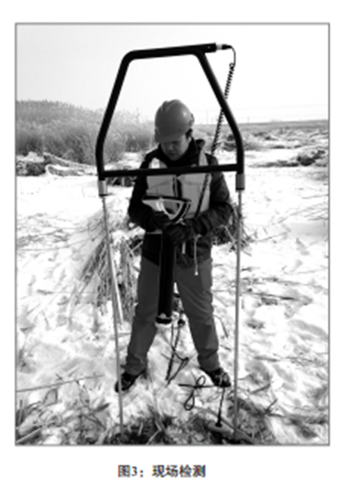 分公司技術(shù)人員根據ECDA檢測的原理,對檢測設備進(jìn)行了簡(jiǎn)單改造,于2013年1月11日-20日,利用黃水溝沼澤段冬季水面結冰的時(shí)機,將檢測設備深入冰面下管道上方的土壤中,開(kāi)展水面下埋地管道的外防腐層評價(jià)。