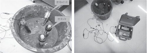 通過(guò)對比可知,上述2支參比電極與標準電極電位差大于5mv,說(shuō)明2支電極均已失效,已不能滿(mǎn)足工程測量精度要求。隨著(zhù)使用時(shí)間的延長(cháng),參比電極受離子污染程度越深,電極自身電位偏差越大。