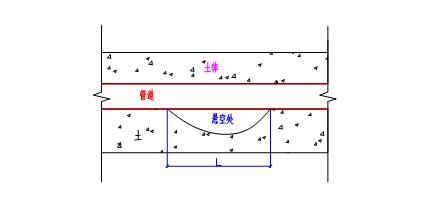 結合管道受力特點(diǎn),針對管道可能的暗懸,確定其安全跨度,設置剛性支墩。
