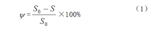 為了進(jìn)一步分析材料的塑性損失,根據公式(1) (式中Ψ為斷面收縮率,S0為實(shí)驗前截面面積,S為試驗后截面面積)計算X80鋼的斷面收縮率,得出:在農田土壤模擬溶液中斷面收縮率為50.8%, 在戈壁土壤模擬溶液中斷面收縮率為40.8%,在沙漠土壤模擬溶液中斷面收縮率為26.7%。
