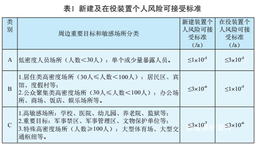 國家安監總局在對發(fā)達國家土地安全規劃、安全距離確定方法進(jìn)行廣泛調研和分析的基礎上,結合我國國情,于2014年4月22日出臺了《危險化學(xué)品生產(chǎn)、儲存裝置個(gè)人可接受風(fēng)險標準和社會(huì )可接受風(fēng)險標準》 [9],見(jiàn)表1。此標準針對的是;袠I(yè),但由于管道輸送的介質(zhì)是石油、天然氣,屬于;,作者認為可以參考使用。