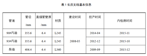 長(cháng)慶支線(xiàn)管線(xiàn)基本信息如表1所示,三條管線(xiàn)同溝鋪設,間距在0.5米左右,3條管線(xiàn)同時(shí)建設,投產(chǎn)時(shí)間不同。
