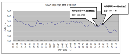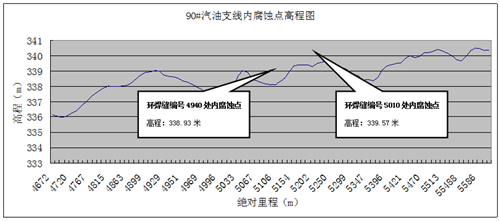 圖7 93#汽油支線(xiàn)內腐蝕點(diǎn)高程圖