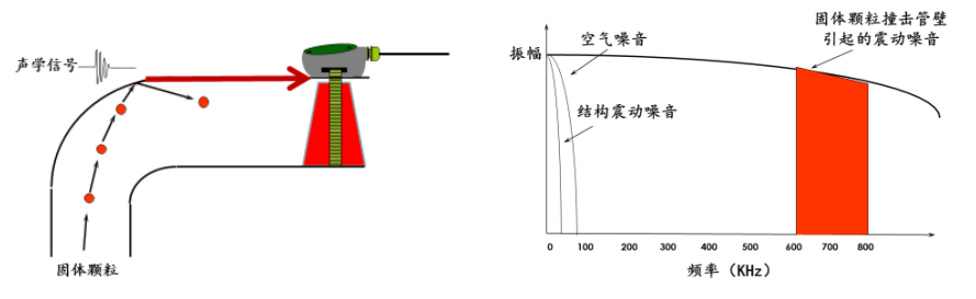砂礫撞擊彎頭時(shí)會(huì )產(chǎn)生震動(dòng)噪音,且噪音頻率遠高于氣液介質(zhì)撞擊彎頭產(chǎn)生的噪音頻率。探頭在彎頭下游收集到高頻噪音后,將其轉換為電信號傳送給主機,主機將電信號收集并計算出該點(diǎn)在測試時(shí)間內通過(guò)的最少砂量,如圖3所示。