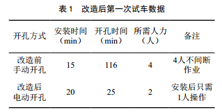 開(kāi)孔機動(dòng)力源改造電機選型配置合理,設計加工附件措施得當。開(kāi)孔機整機外形設計合理、實(shí)現了整機集裝化。通過(guò)不同材質(zhì)、厚度的多次開(kāi)孔試車(chē)以及實(shí)際動(dòng)火作業(yè),證明改造后的開(kāi)孔設備開(kāi)孔質(zhì)量和安全操作得以全面提升,工作穩定、不卡刀,有效縮短了開(kāi)孔時(shí)間,提高改善了開(kāi)孔機的性能和效率,明顯降低了員工勞動(dòng)強度,和采購新設備相比,經(jīng)濟效益可觀(guān)。