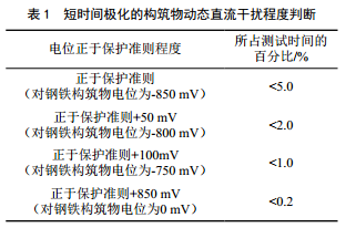 (2)從管道極化電位偏移的角度對動(dòng)態(tài)直流雜散電流干擾下陰極保護管道的干擾風(fēng)險規定見(jiàn)表 1。