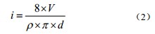 式中: i 為評估的交流電流密度, A/m2; V 為交流干擾電壓有效值的平均值, V; ρ 為土壤電阻率,Ω·m; d 為破損點(diǎn)直徑, m。