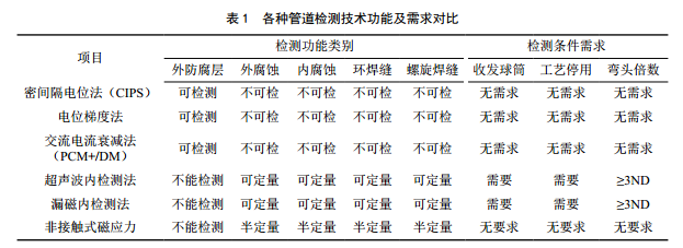1 管道檢測技術(shù)現狀對比