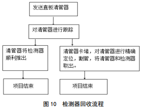 發(fā)送帶有發(fā)射機的直板清管器將遺留檢測器推出,如若二次卡堵,利用發(fā)射機定位卡堵點(diǎn),進(jìn)入斷管取球程序。作業(yè)流程見(jiàn)圖 10。
