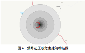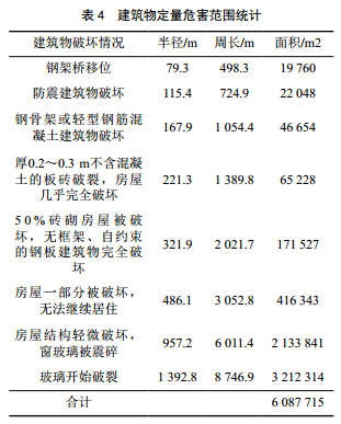 該爆炸事故對建筑物定量危害范圍如表 4所示。