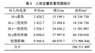 火球定量危害范圍如表 5所示。