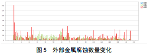 2011年和2015年外部金屬腐蝕都覆蓋全線(xiàn),但2015年缺陷數量比2011年增加了1 959個(gè),說(shuō)明外部腐蝕數量發(fā)展較快(圖 5)。