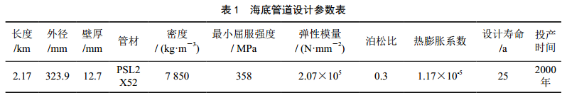 該海管于2000年12月投產(chǎn),設計壽命為25年。海管設計參數如表 1所示。