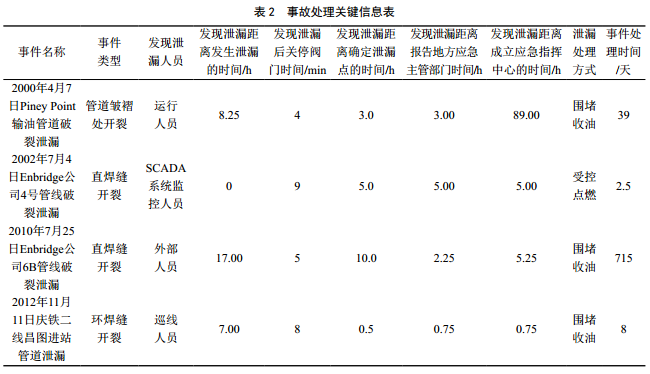 (2)選擇泄漏處理方式很關(guān)鍵。如Enbridge公司4號管線(xiàn)破裂泄漏采用受控點(diǎn)燃的方式處置泄漏原油,大大降低了事件處理的時(shí)間和成本。同時(shí)也發(fā)現SCADA系統和泄漏監測系統等不容易發(fā)現某些一定條件下的泄漏。