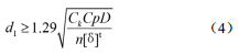 式中d1為最小螺紋直徑, mm,根據d1查取螺栓標準直徑; CK為預緊和剛度系數,取值1.5; n 為連接螺栓數量,個(gè)。