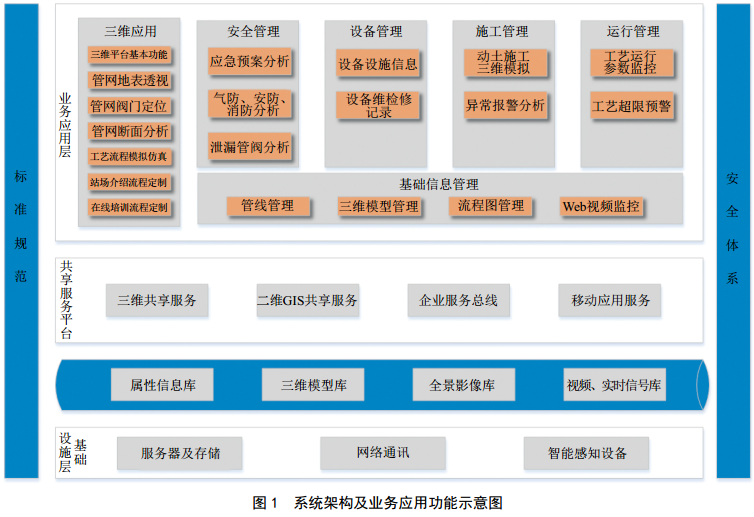 油田站場(chǎng)由于資料丟失、擴建改造和施工圖紙未及時(shí)存檔等原因,造成地下管線(xiàn)資料不準確、不完善,特別是不能準確掌握歷次維修改造后的地下備用或廢棄管線(xiàn)的管徑、材質(zhì)、走向、埋深等關(guān)鍵數據。筆者在研究數據標準化采集錄入的基礎上,論述了智能化管線(xiàn)管理系統架構及關(guān)鍵技術(shù),以實(shí)現基礎信息管理、安全管理、運行管理、設備管理、施工管理、三維應用等功能。