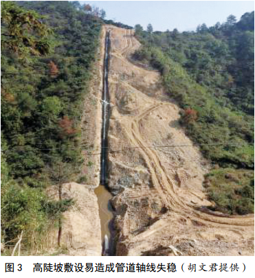 地形急變帶內崩塌、滑坡、泥石流突發(fā)性明顯,頻率高,沖擊力大,具有高速遠程滑動(dòng)和流動(dòng)的運動(dòng)特點(diǎn),嶺脊狹窄,油氣管道近距離并行,管道設計、施工、運行及維搶修難度極大,后期運營(yíng)安全隱患較多(圖 3)。