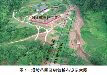 (3)采取鋼管樁支護措施。針對滑坡的穩定狀態(tài)、滑坡周邊場(chǎng)地地形條件以及考慮施工的安全性,對滑坡采取了鋼管樁支護措施,在滑坡中后部設置了兩排鋼管樁,共計86根(圖 1)。
