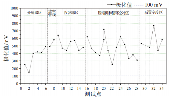 圖 4 站場(chǎng)埋地管道極化值測試結果