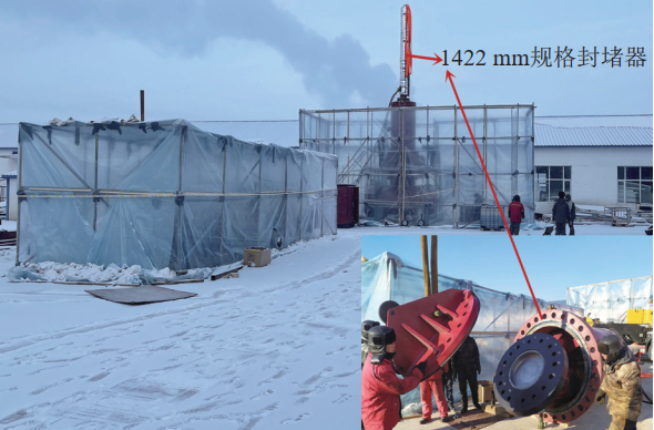通過(guò)試驗臺驗證低溫環(huán)境下的垂直帶壓封堵能力,試驗指標見(jiàn)表 2,試驗現場(chǎng)見(jiàn)圖 5。