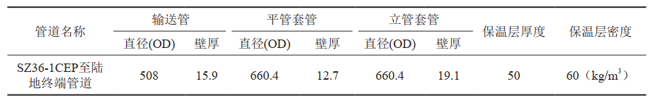 表 1 SZ36-1CEP至陸地終端海底管道物理參數表( mm)