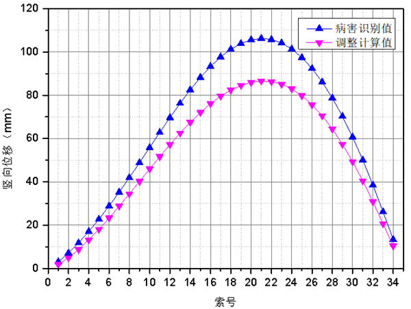 圖 4 主梁橫向偏位檢測值與識別值對比