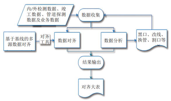 (1)基礎數據治理。一是建章立制,確保新增數據錄入準確可靠。公司統一管道基礎數據錄入標準、數據處理標準、數據質(zhì)量標準等,從源頭把關(guān)數據質(zhì)量。明確數據產(chǎn)生、錄入、存儲、應用等環(huán)節的工作內容以及相應管理人員職責及工作流程,將其納入公司管道管理考核指標,督促員工按照規范要求進(jìn)行數據采集維護,確保新增數據準確可靠。二是明確基礎數據更新周期。三是按照國家管網(wǎng)內檢測標準要求統一數據格式、統一特征值表單等,推進(jìn)檢測數據整合對齊(圖 1)[2]。四是查漏補缺,落實(shí)歷史數據治理工作,督促基層人員主動(dòng)進(jìn)行基礎數據校核修正,逐步以GIS系統檢索替代線(xiàn)下Excel統計查詢(xún)模式。