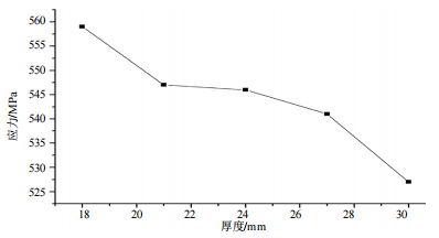 圖 5 卡具殼體環(huán)形厚度和螺栓應力的關(guān)系