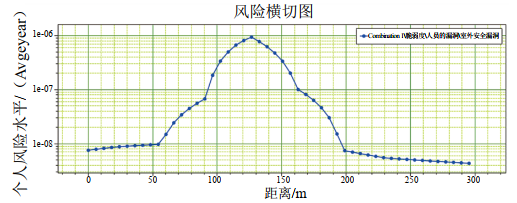 圖 5 眾合醫院高后果區定向鉆敷設管段個(gè)人風(fēng)險橫切圖