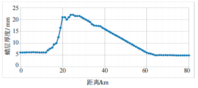 2.2 管道沿線(xiàn)結蠟厚度分布