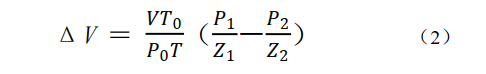 V為管網(wǎng)計量管段總容積,m3;T0取293.15, K;P0取0.101325, MPa;T為氣體平均溫度,K;P1為起始點(diǎn)管道內氣體平均壓力(絕),MPa;P2為終止點(diǎn)管道內氣體平均壓力(絕),MPa;Z1、Z2為對應P1、P2時(shí)的氣體壓縮因子。