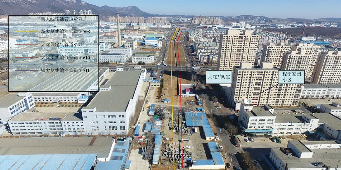 (1)將高后果區安全管理寫(xiě)入法律。隨著(zhù)管道線(xiàn)路的逐漸延長(cháng),管道安全保護與城市建設發(fā)展之間的矛盾日益凸顯。如大沈線(xiàn)天然氣長(cháng)輸管道有15.9公里穿過(guò)大連市金普新區城市建成區,周邊工廠(chǎng)、學(xué)校、社區、商業(yè)網(wǎng)點(diǎn)林立,形成人員密集型高后果區,一旦發(fā)生泄漏爆炸后果不堪設想(圖 1)。雖然政府有關(guān)部門(mén)提出“控制增量,管好存量”的要求,但實(shí)施效果并不理想。由于高后果區管理涉及到國土空間規劃,城市規劃部門(mén)審批管道周邊新建項目缺乏法律依據,一般都比照管道工程設計規范關(guān)于管道與建構筑物距離不小于5米的規定,顯然不能滿(mǎn)足當前城市安全發(fā)展的需要。