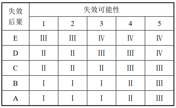 GB 32167附錄E,給出了典型的風(fēng)險矩陣和評價(jià)等級,如表 1、表 2、表 3所示。