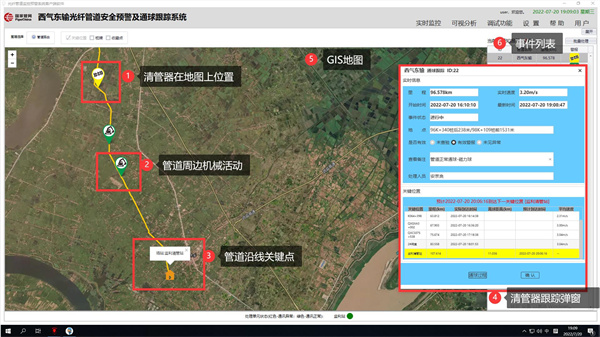本次應用光纖預警系統跟蹤定位內檢測器,表明其能夠有效識別檢測器運行過(guò)程中外部環(huán)境因素產(chǎn)生的其他信號來(lái)源,客觀(guān)實(shí)時(shí)對事件有效告警,在跟蹤定位檢測器位置和運行時(shí)間上與現場(chǎng)實(shí)際運行參數誤差較小,具有參考性。同時(shí),光纖預警系統能夠進(jìn)行可視化提示且可復制性強,可以實(shí)現以下功能。