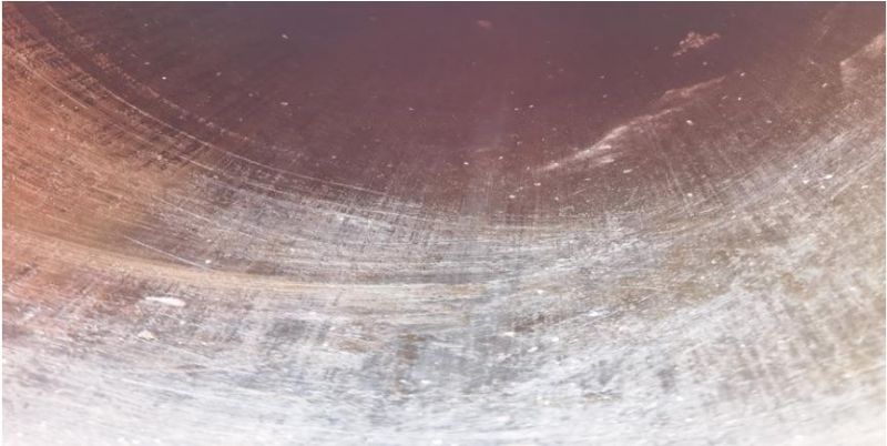 為了驗證管道清洗效果,分別在滑縣站內管道和洛陽(yáng)站外管道斷管檢測,斷管處無(wú)殘液,斷口管壁顯示清洗效果良好(圖 1)。四合一氣體檢測儀檢測管內氧含量最高為16.9%,其他氣體含量為零,達到要求。